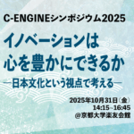 2025年11月11日 / 最終更新日時 : 2025年11月11日 MN イベント開催報告 【開催報告】C-ENGINEシンポジウム2025「イノベーションは心を豊かにできるか」 一般社団法人C-ENGINEが主催する博士人材育成シンポジウム2025を開催。研究インターンシップや産学連携に関心をお持ちの方が参集し、文化と科学の交差が生むイノベーションについて議論しました。